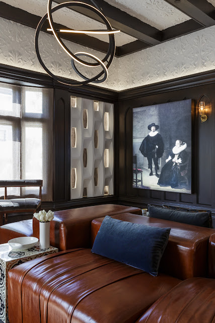 Martin's great style and imagination reinvented every detail of the room.The tech panels of images...Rembrandt and Dutch master inspired...and so modern and fresh and chic and a bit/ quite witty.