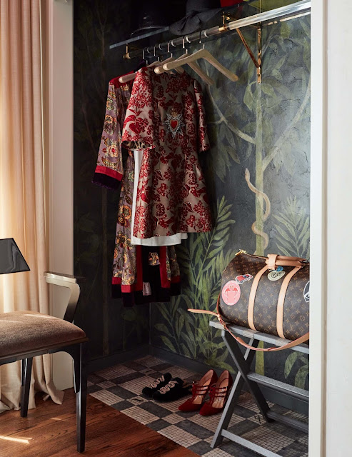 Tucked inside the closet is the ‘Lararia’, a lavish fresco by Caroline Lizarraga Decorative , with vibrant imagery of trees and snakes believed by Romans to bring abundance and good fortune.