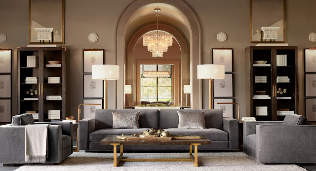 Galleries feature installations of home furnishings devoted to exclusive new RH Interiors, Modern and Outdoor collections. I admired the bed linens, accessories, rugs, lighting and bathroom decor.