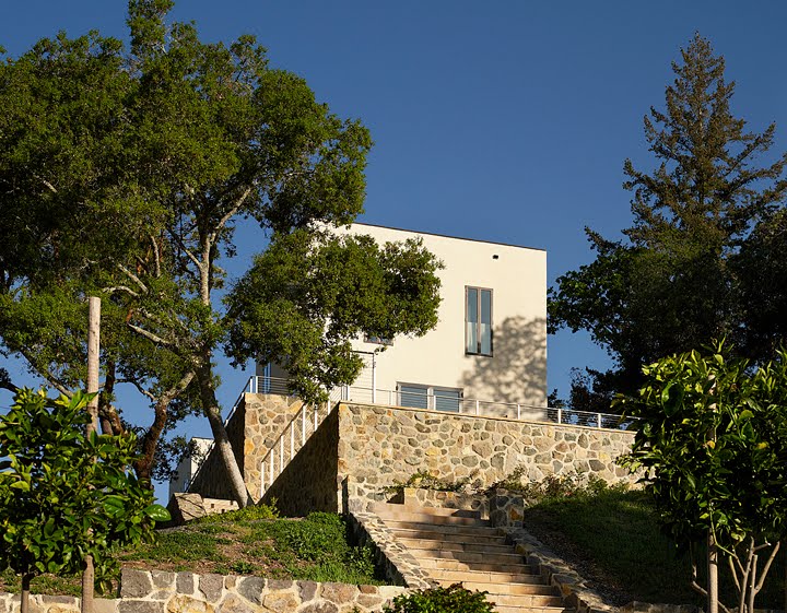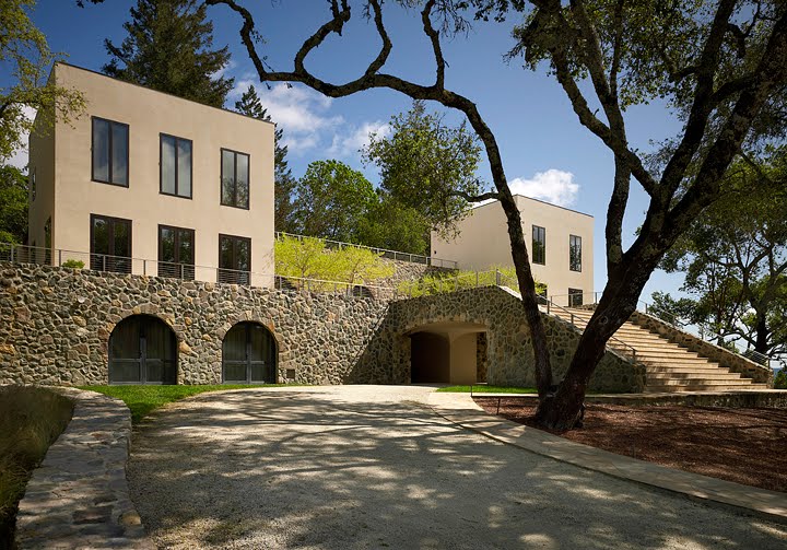 Inspiration: Early 20th-century country houses by Adolf Loos, a forerunner of rationalism and modernism. With this Healdsburg house, inspired by both Italian rustic architecture and Adolf Loos, Batey appears to have added a modern structure on ancient stone foundations.