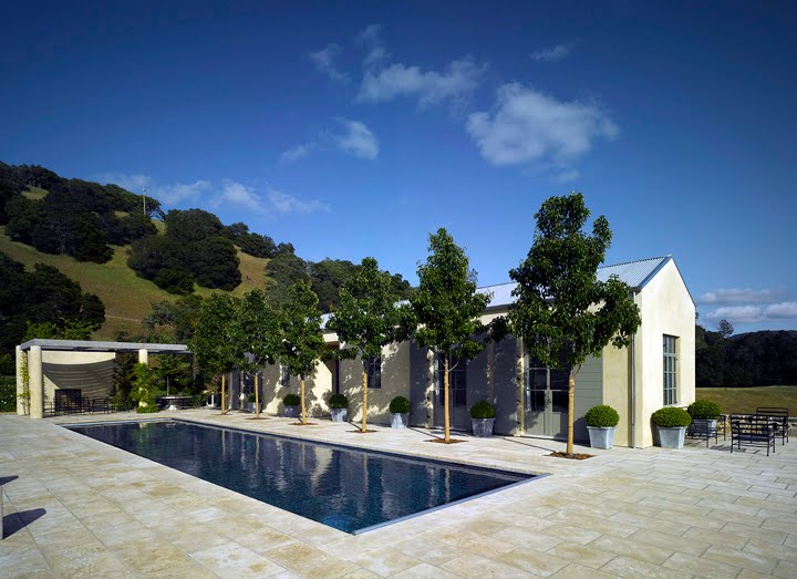 HI ASD--Dear Floppy-Yes, I agree about de Botton. I have a signed copy of this book and love to read about his wanders through the ages of architecture. You are correct that these 3 houses by Batey have a pared-down and unpretentious and somewhat low-key and monastic look. In person, they exude the sun and light and fresh air and brightness of the Napa Valley and Northern California. Summers the doors are open and life is lived outdoors or around the pool in the afternoon. Note that each of these houses has a pool--parties and entertaining and guests are a happy part of the summer. I love to see them in the late afternoon--bliss. Andrew brings his 3 decades of experience. Important point: while each house is strict and pure, each is totally different. There is no 'theme' design or 'signature' here.