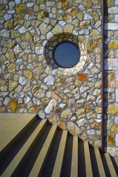 In the eighties, Batey dreamed up a series of highly individual family houses, experimenting with his love of local stone for solid walls, limestone walls, stone floors, and expansive rooms. His signature: a sense of a solid attachment to and respect for the surrounding hills, vineyards, and rocky outcrops. He favors stone from century-old quarries in the region, surrounds houses with broad shaded terraces for year-round living, and throws up massive doors and large windows to embrace views.
