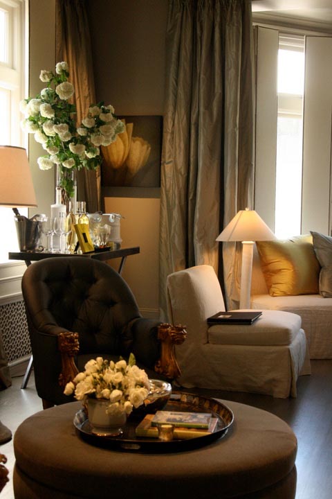 A room designed by Myra Hoefer for the San Francisco Decorator Showcase 2009 demonstrated the color tonalities she loved: taupe, grey, and greige, with splashes of white plaster and paint.