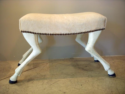 The tabouret with hooved legs (Tabouret Chèvre) is a particularly wonderful piece, derivative of Louis XVI furniture that used farm animal motifs and embellishments, but simplified for today.