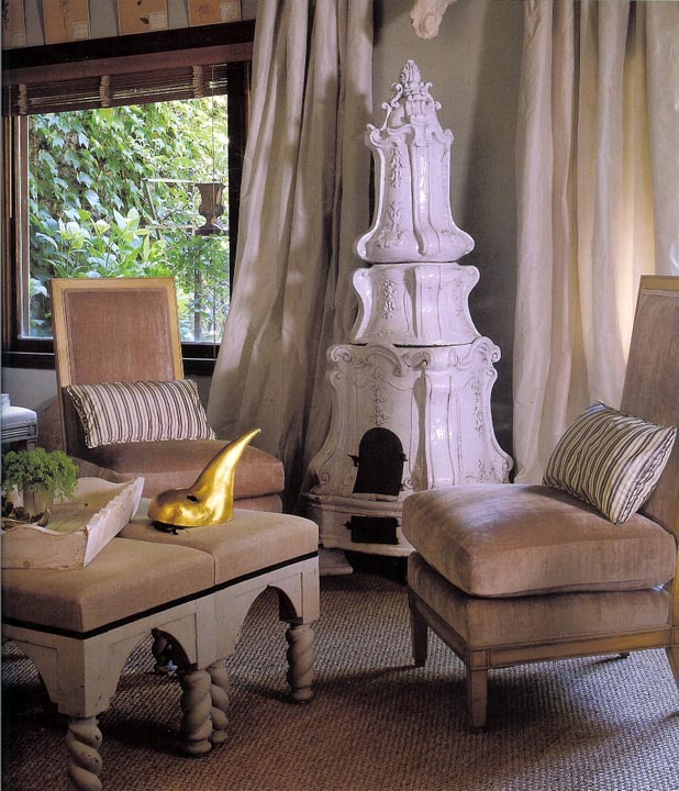 “In my daily rounds in Paris, I would see quirky painted antiques combined with simple functional sea grass matting, or voluptuous silk taffeta draperies and delicate Louis XVI-style painted chairs mixed with rustic iron chandeliers for Parisian panache,” said Hoefer, who is originally from Vancouver. “I’ve incorporated those lessons in my décor. I play with all kinds of contrasts in design for California houses. It’s the surprise, that juxtaposition of old with new, rough against smooth, or rustic with refined, that give design an edge. It becomes less precious and uptight. It makes a room more modern, not a period piece.”