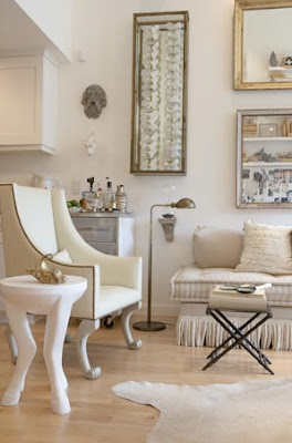 SS: I like using very flat rugs or my all time favorites, cowhides. I just purchased three beautiful hides in different shades of tans and cognac. I put them on painted white glossy floors and they help the space become fluid and interesting.