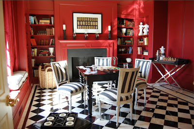 DDS: You also design glorious rooms with artful colors like rich sunny yellow (a striped headboard), and watermelon (dining room walls), and pumpkin (a living room in Sausalito) and chartreuse (silk pillows), or even orange silk curtains in a grand house overlooking the bay in San Francisco. You calm down these bright colors with white or cream or even walnut or black.