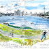 The sunset blue one-shoulder Grecian gown is in 100% silk knit jersey. “I love working with these fabrics,” said the designer.