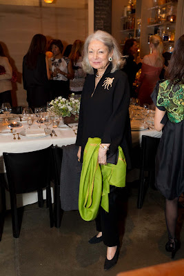Note that wonderful new 'octopus' pin she is wearing in the shots with Guillaume Henry at Boulette's Larder dinner: it is a custom piece by Taffin/James de Givenchy. Love it.