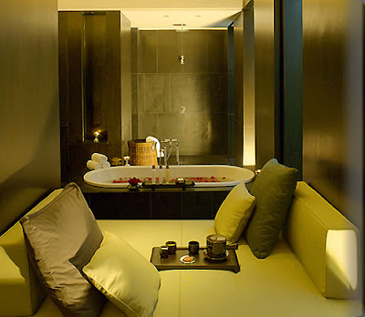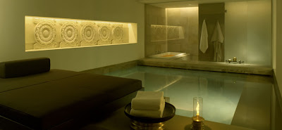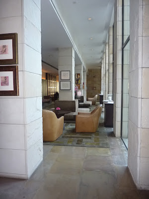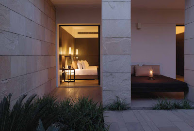 My first impression of the hotel is that an austere and highly refined architectural sensibility is at work here. Pared down and uncompromising, the walls of honed ivory-colored stone are somehow reminiscent of the pale, perfect, pure exterior walls of the Taj Mahal.