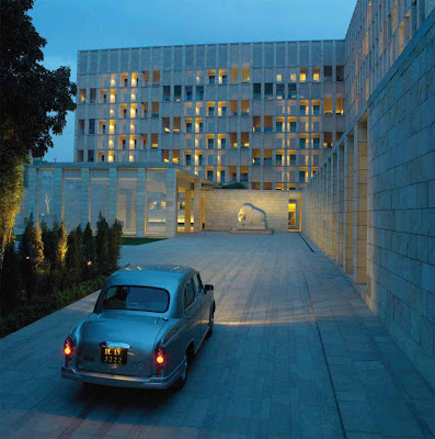 My first impression of the hotel is that an austere and highly refined architectural sensibility is at work here. Pared down and uncompromising, the walls of honed ivory-colored stone are somehow reminiscent of the pale, perfect, pure exterior walls of the Taj Mahal. And yet this new Aman is from another aesthetic, style sensibility, and century entirely. It’s Meier-modern, and feels logical, harmonious, solid but ethereal, intelligent, understated. It’s perfectly serene on this 41 deg F late autumn morning, as it will be on the scorching 112 deg F days that suffocate Delhi in July's monsoon season.