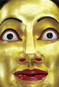 Above, the striking 11-foot tall goddess sculpture in gilded fiberglass by Indian superstar artist Ravinder Reddy (born 1956) that greets guests arriving at the Aman New Delhi.