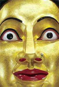 Gold-leafed fiberglass with Sanskrit holy scriptures calligraphy.