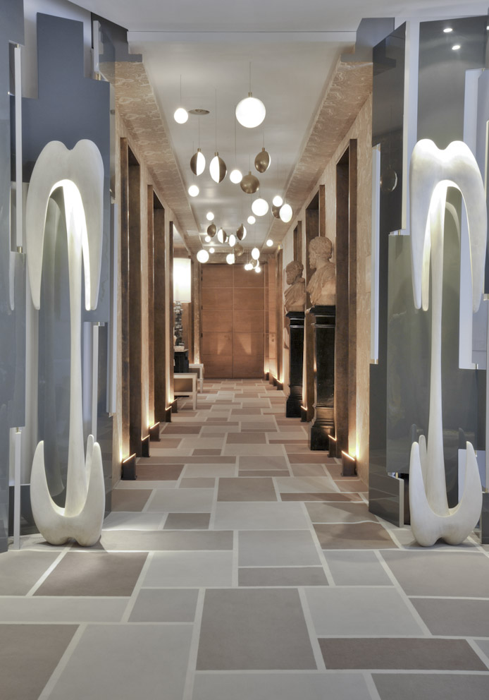 “It’s a modern palace on the scale of a Parisian apartment,” said the designer. “I’m creating a relationship between proportion and composition and introducing contrasts such as mineral and mechanical, free-form and geometric, suppleness and brutalism.”