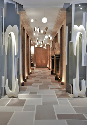 It is important to note: this is not a residence. It is a vignette for an exhibition, temporary. He created the walls and floor and the architecture--within a vestibule and hallway. I love the absolutely uncompromising selections--the sculptures, the van der Straeten chandelier, so chic, and the totally original approach. It is seldom that we see design--that we've never seen before, so original and bold.