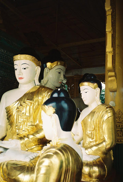 A group of gold-leafed Buddhas at the Schwedagon pagoda in Yangon. |