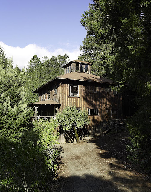 Yeager’s redwood board-and-batten studio, built like all of his follies by Calistoga contractor Richard Horwath, reaches high into the surrounding ancient oaks. Topped with a jaunty cupola, it lights up like a magic lantern on a summer afternoon.