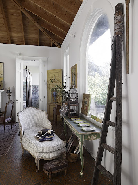After leaving his San Francisco studio to live and paint in the Wine Country twenty years ago, Yeager came upon a neglected walnut orchard in a remote valley north of Calistoga. He decided to build a Swedish cottage in the Gustavian style.