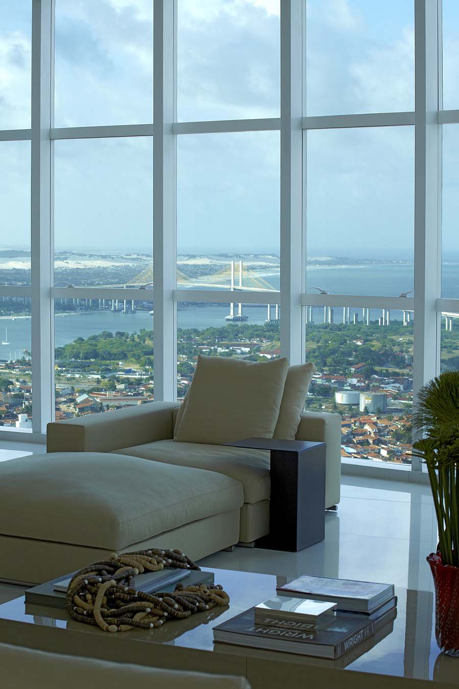 This private residence is situated on the top two floors of the tallest building in Natal—one of the fastest-growing cities in South America.