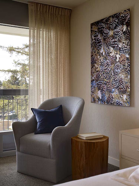 Accommodation includes two-bedroom suites on the top floor that juxtapose an airy modernist mood with headboards crafted from reclaimed winter-weathered fence posts from Colorado. Art is by San Francisco talent, Ronnie Genotti.