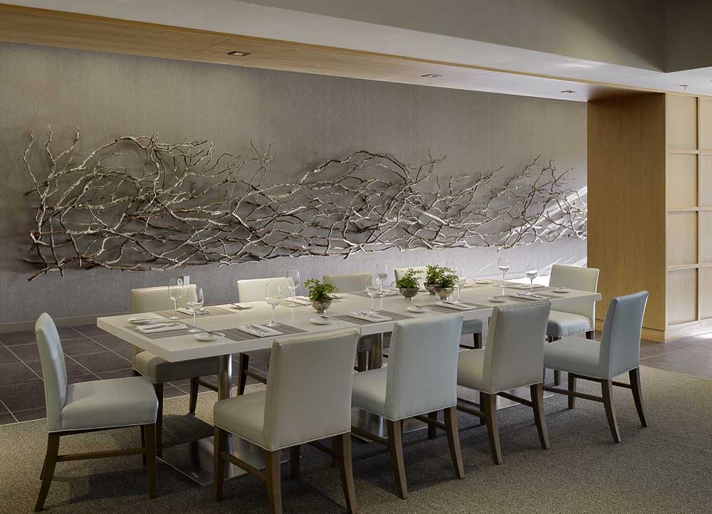 Oldroyd, acclaimed for the rigorous simplicity and elegance of his work (always with a dash of wit and surprise), embraced the strict geometry of the architecture. He worked closely with his associate, Lawton Eng on the hotel project.