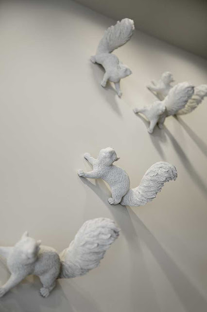 Oldroyd’s fun side is expressed with a series of white resin squirrels (found on the Internet) that ‘scamper’ across the walls and ceilings leading to guest rooms.