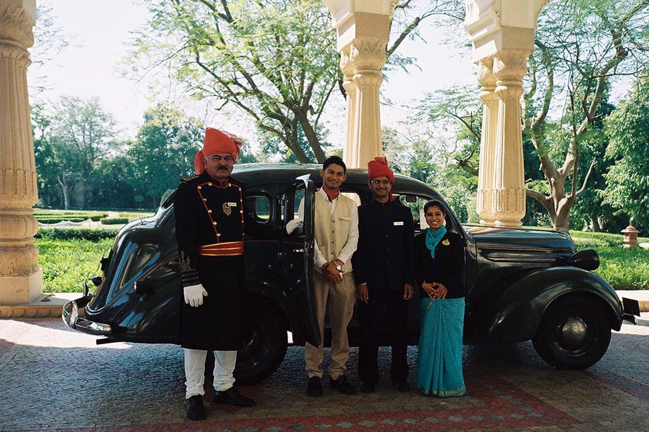 Images of gardens, peacocks, vintage cars at Gem Palace, and Plymouth and Rambagh staff by Diane Dorrans Saeks, published here exclusively.