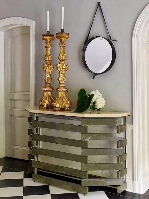 Ooh, so much to admire in this house. If I had one favourite piece of furniture, it is the Jean de Merry XXL Marble, Bronze and Parchment Console, which is so beautifully placed within the lines of the panelling, and the elegant placement on top of it. Thank you for sharing with us!