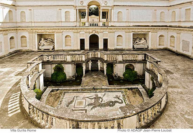 I also love the perfect symmetry and grace of the architecture of Villa Giullia. I admired the mosaic and the two statues on each side. It was also part of a beautiful moment everything was so quiet. I was so far from crowds it was as if this place was only for me at this moment.