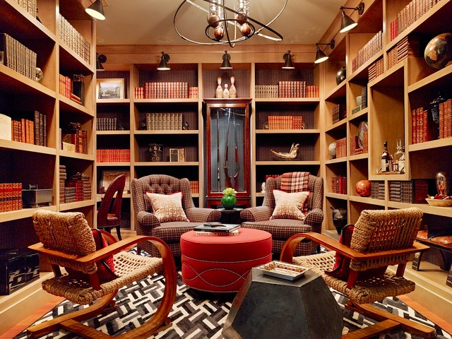 Kwong redesigned the kitchen with new shelving, and put in new millwork and countertops. She replaced the existing white carpet with ebonized oak floors, and installed recessed lighting, along with new chandeliers and sconces.