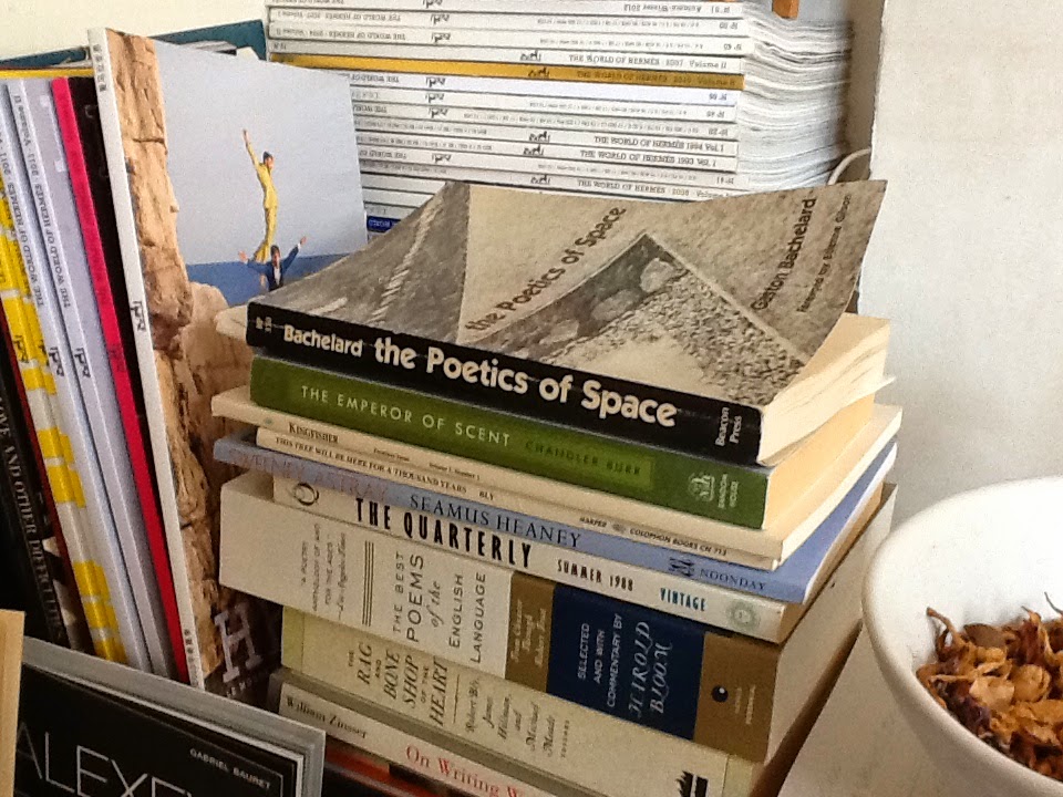 Many of my books are coming apart and I love that. I like worn pages, turning ivory. These books are the best company, with history and signs of life.I re-read my original school reference books on Gerard Manley Hopkins or Dylan Thomas. I'm reassured by favorite covers, scuffed and friendly, of books I've had since college.