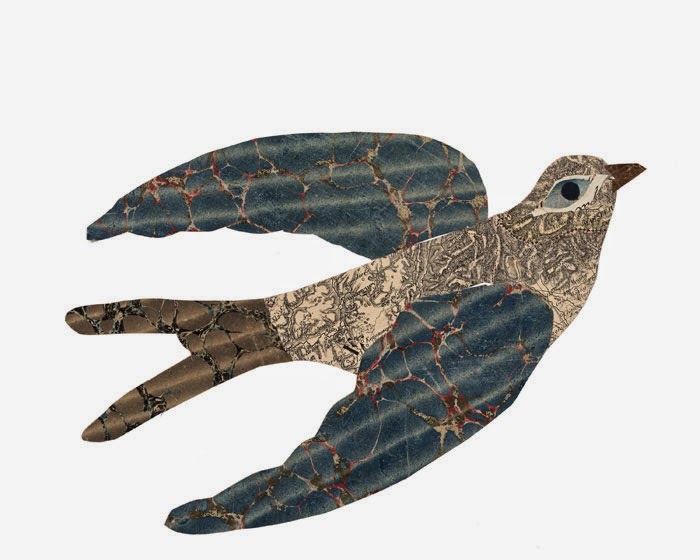 “I started making collages in 2009 after working with textiles for many, many years. I love the simple beauty of an aged page of a vintage book—and this was how my "cut and sew" became "cut and paste."“Collage always had appeal for its serendipity and coming together of unlikely suspects. I always loved the newspaper found in Picasso and Braque's cubist works. Cutting is a natural extension of drawing, a practice I have had since childhood.