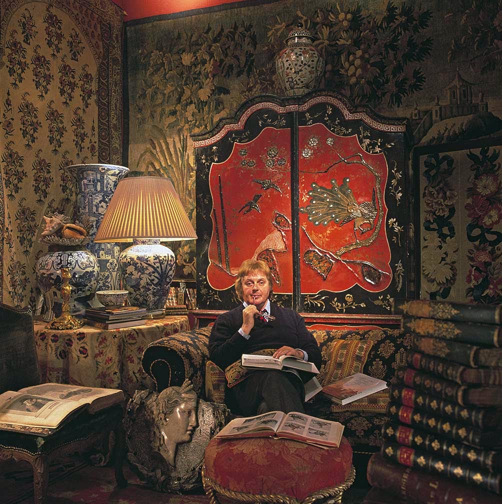English interior designer Nicky Haslam has crafted a fantastic five-decade career designing classic and alluring rooms and gardens. He’s written many design books and an autography, has designed fabric collections and furniture, and is also an occasional recording artist, a painter, and an alluring performer of Noel Coward songs at London nightclubs.