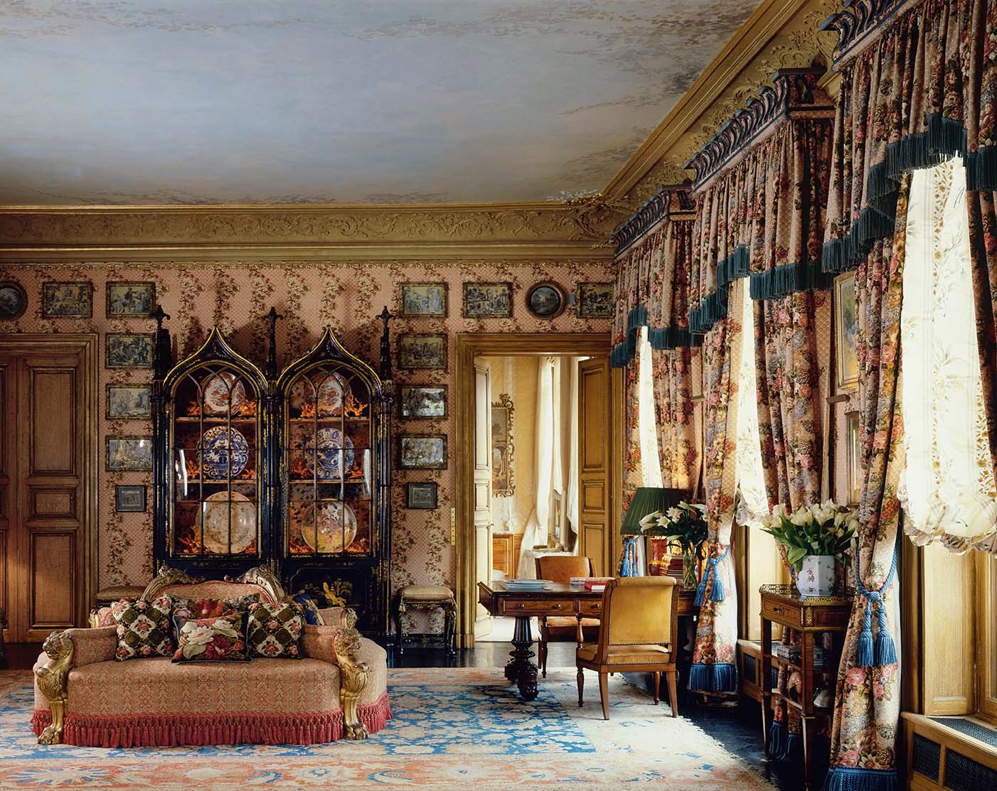With her own rooms, she is free to gather lacquered urns, lamps, Chinese antiques, Russian bronzes, and sleek chairs and tables, into tableaux of astonishing beauty and plush severity.