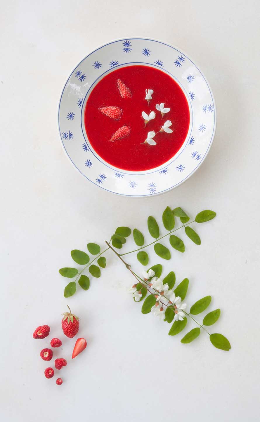 DDS: Your recipe and concept for chilled strawberry broth with acacia flowers and grappa and mint is so chic.
