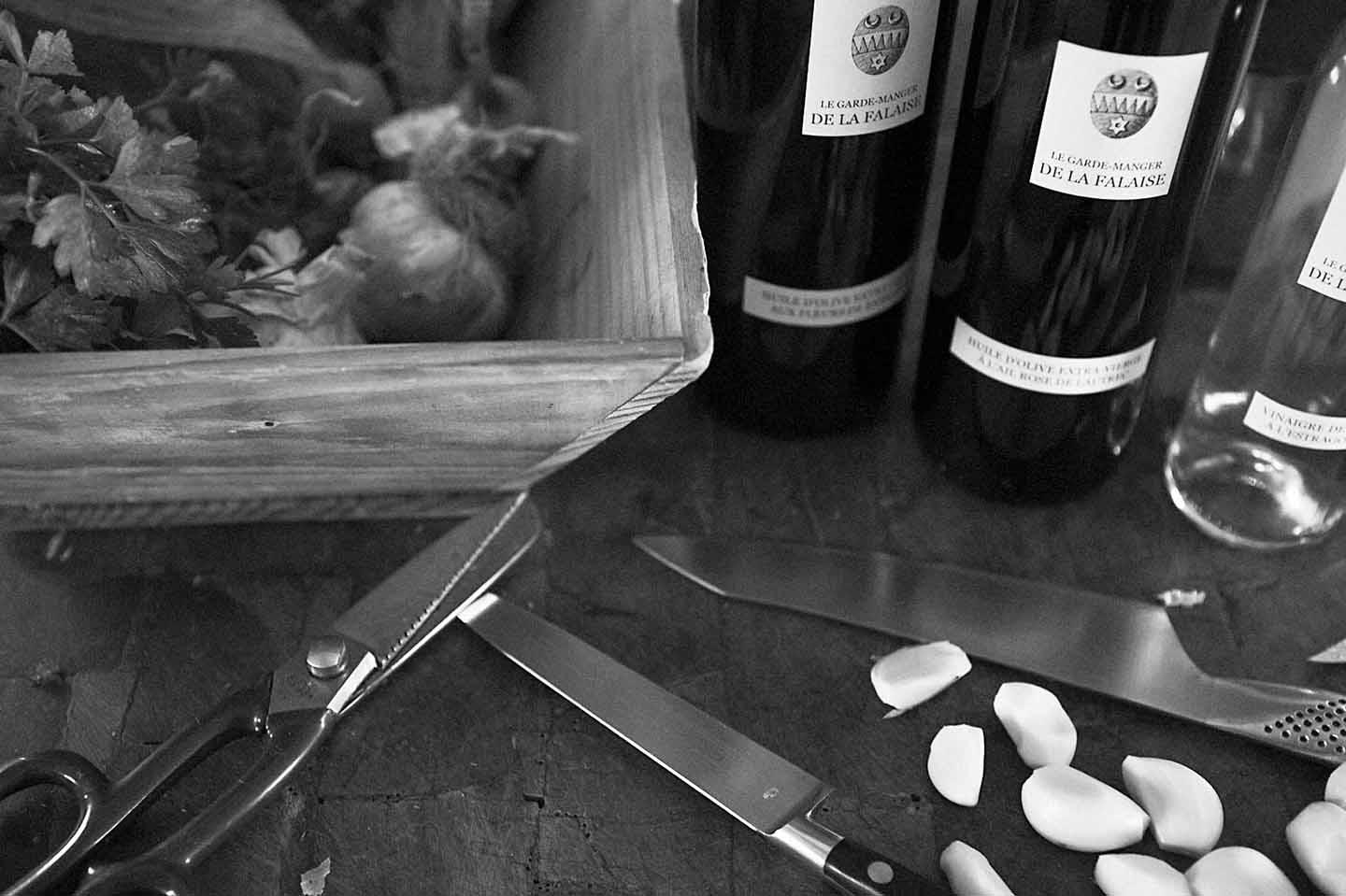 Le Garde-Manger de la Falaise oils and vinegars at Claus coffee shop/specialty-food purveyor, rue Jean-Jacques Rousseau (near the Palais-Royal), Paris. For availability: [email protected]