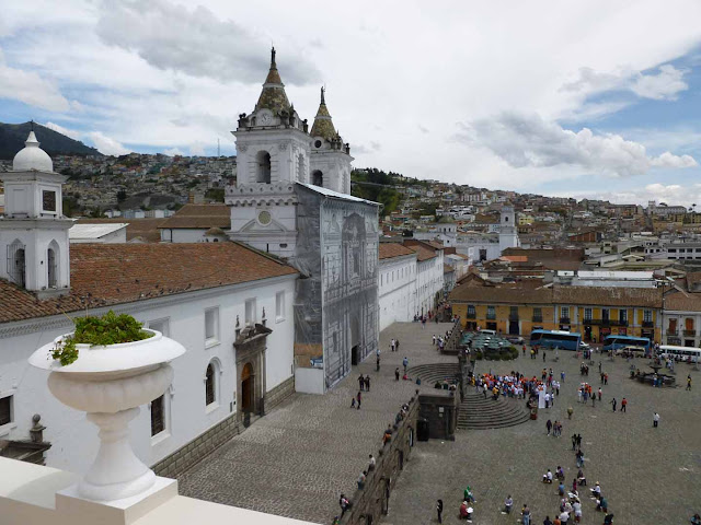 In Quito, I chose to stay in the Casa Gangotena, which opened in 2011. It’s in the historic center, which has about a dozen significant churches, chapels, cathedrals, and monasteries and religious monuments. They date from the 16th century, and several took a century to complete. You can see several from the hotel.