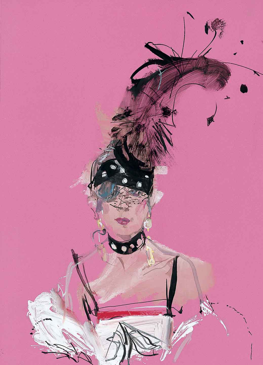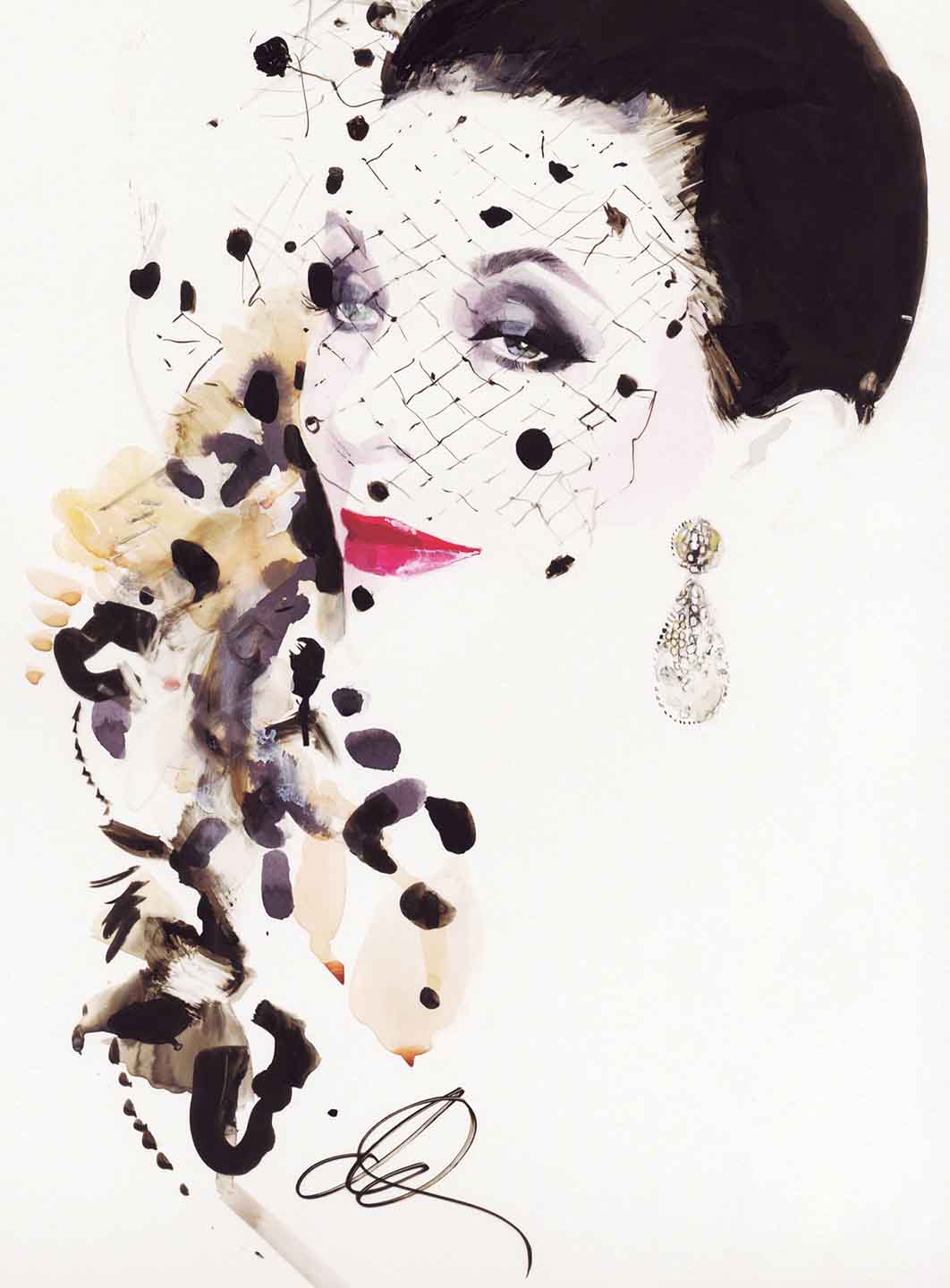 Each portrait in the book—Joan Collins, Denise Hale, Linda Evangelista, Daphne Guinness—was the magical result of a private sitting (Hotel de Crillon, Claridge’s, Hotel George V, Crosby Street Hotel, the Place Vendome). Beautiful women in luxurious settings. It is a wonderfully engaging book. I told David I envied him and his glamorous career. He responded, “Yes, I envy myself.” Come and see why he is being hailed by Vanity Fair as the greatest fashion illustrator of the 21st Century.