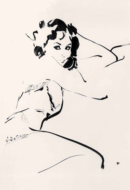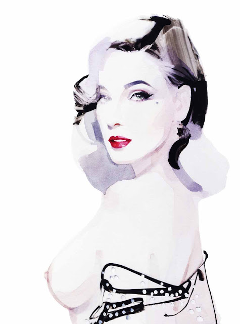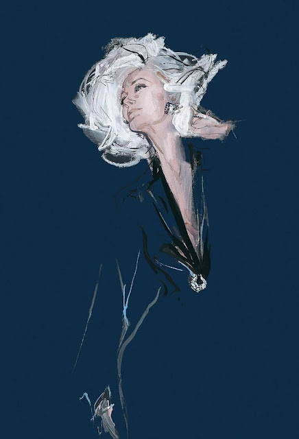 Here’s one of my favorite comments from David Downton, from my previous blog post, 2013:DDS: You also accept special commissions for portraits, like the ones recently of Valentino for a publication, and the notable new private one of Denise Hale. Tell us how you created the first brilliant and vivacious illustration of my dear friend Denise
