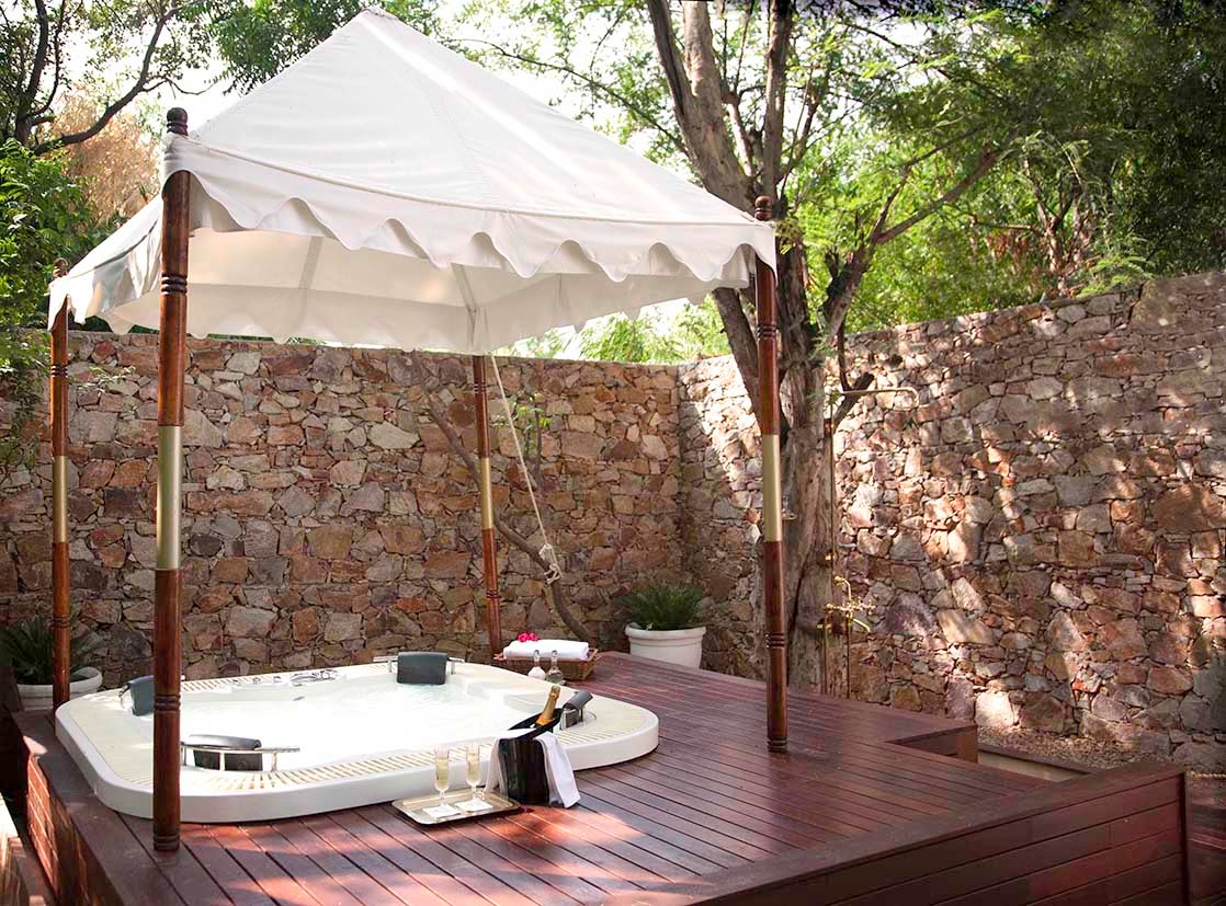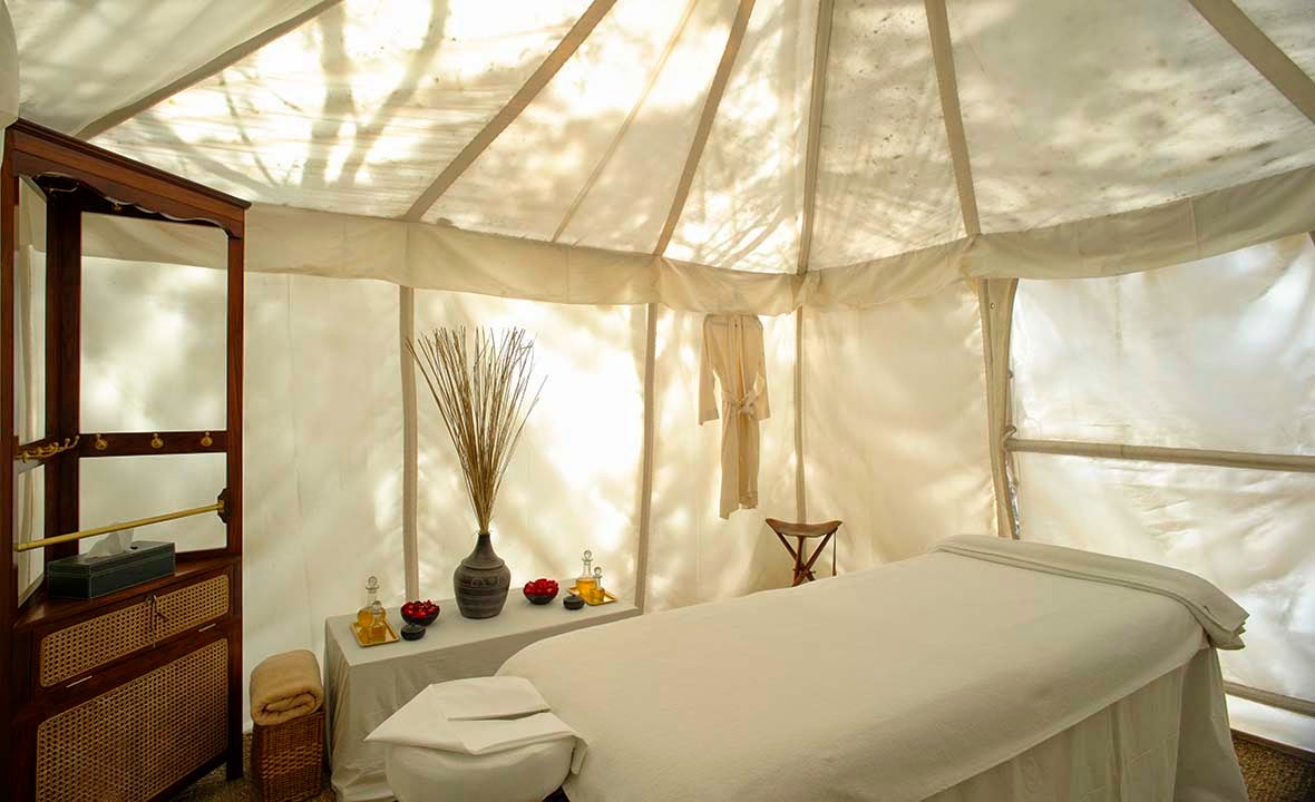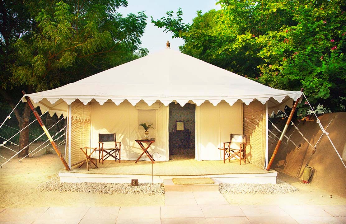 The tents, which are surrounded by traditional Indian clay walls, are totally private and quiet—and the tent canvas creates a tranquil mood. Windows can be opened, and doors and walls are always adjustable depending on day warmth and evening cool.