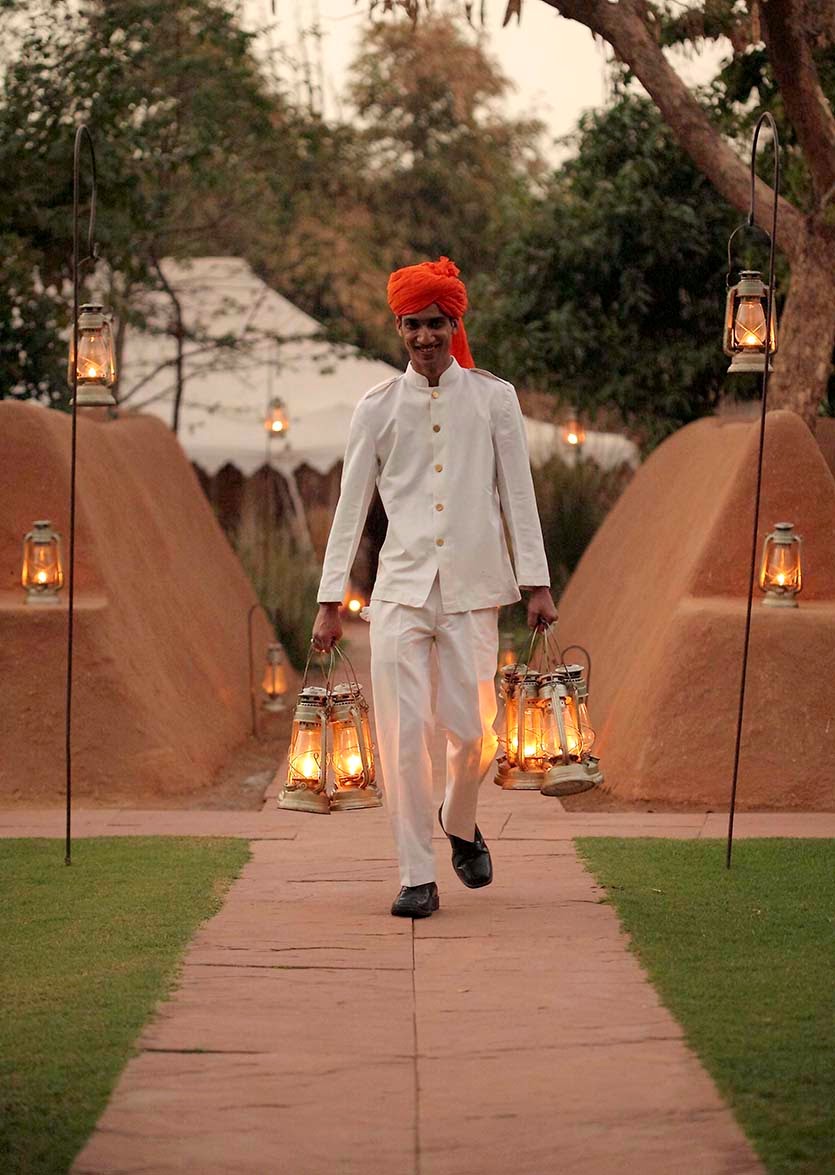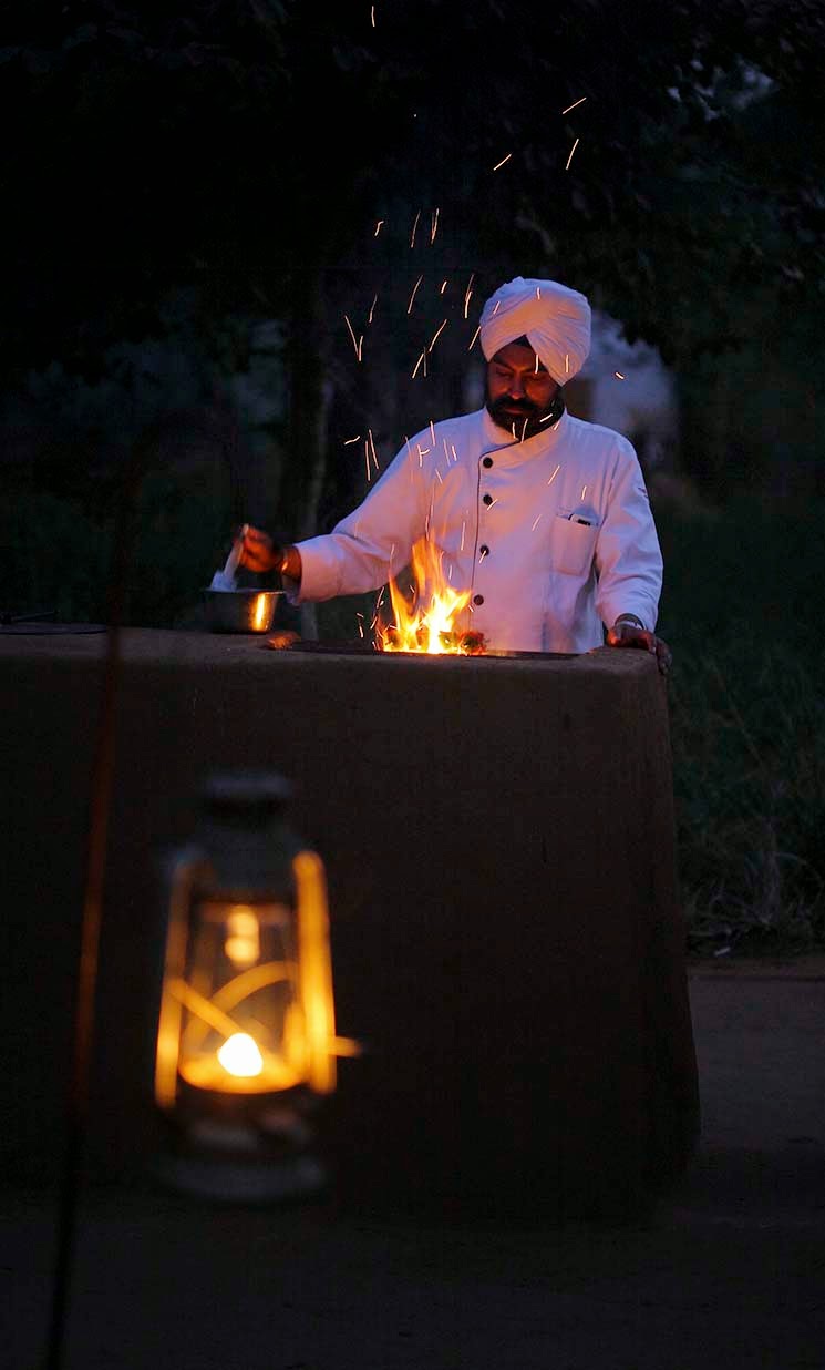 Dinner is usually served around a campfire and the atmosphere is very ‘Out of Africa’ with red-turbaned waiters in white tunics, very Raj-y.
