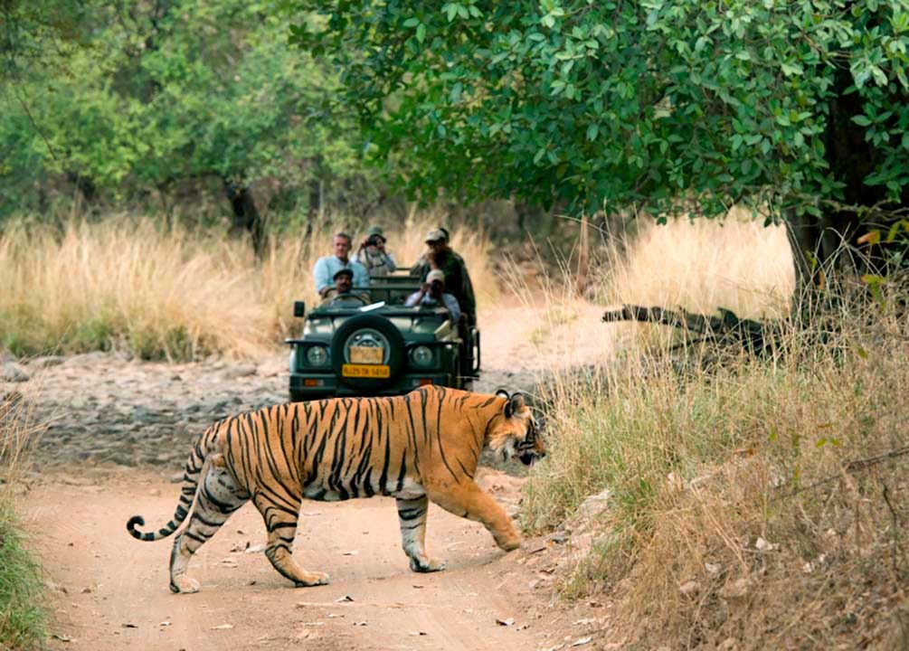 Tiger sighting is highly addictive. There’s the thrill of seeing all of the wild creatures in their habitat. At first, even the sight of a motionless grey mugger crocodile dozing in the sand, or frisky taupe-colored Sambar deer running in a herd, or spotted deer in camouflage among the trees, is very exciting.