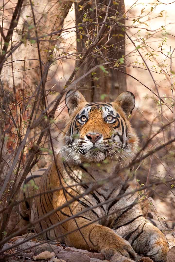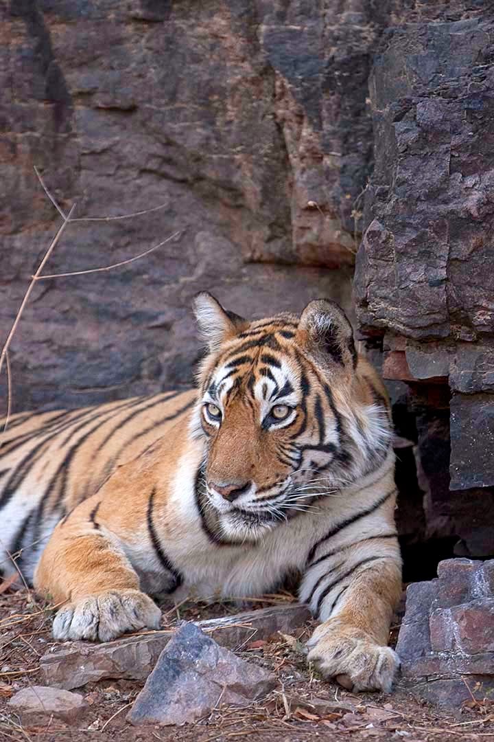 Here are some other shots of tigers taken by Anjali and Jaisal Singh in Ranthambore. The tigers there, protected, are the noblest creatures. They’re very large-scale, and their feet seem enormous. They roam for miles. They are camouflaged in the flickering shadows of trees, but their markings are distinct and very clearly defined.. They look so healthy and pristine—it’s easy to imagine that at night they might return to a luxury tent where they are brushed and groomed and their teeth are polished, and they’re given their vitamins and a sumptuous deer or two for supper.