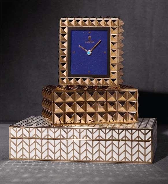 I love this new collection. The pyramid boxes, the Art Deco trays, the scented candles, all somewhat surrealist. They look like pieces that Babe Paley or Jean Cocteau and Marie-Laure de Noailles would have collected or given as gifts, and surely the Duchess of Windsor would have given pieces to her Duke for their amusement.