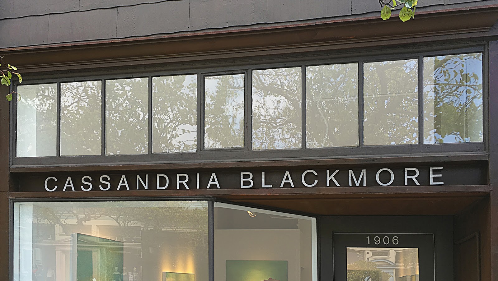 The Cassandria Blackmore studio, above, is at 1906 Fillmore Street (at Bush Street), San Francisco. The studio, a showcase of Cassandria’s most recent work, is on a very lively block of Fillmore Street, opposite Invision Optometry, across from Florio restaurant, and around the corner from Out the Door (OTD), by chef Charles Phan who founded the great Slanted Door restaurant in the city.