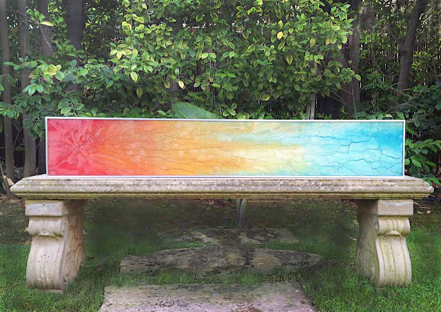 BD: Yes, Cassandria has perfected her technique, back-painting small and large abstract works that evoke landscapes and skyscapes. After the paintings dry, they are glued to plywood held in custom aluminum frames; she then shatters or fragments the glass with a hammer or cutter. The joints are carefully grouted and custom cast hooks are used to wall-mount the finished artwork in such venues as the Bellagio, Cosmopolitan and Aria Hotels in Las Vegas, the Waldorf Astoria in Orlando, the collections of the Peninsula Hotel group, Ritz Carlton Hotels, and other private collections including the Bill and Melinda Gates Collection.