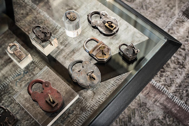 Details, details — Collection of locks: Collection of antique and vintage locks on acrylic cubes.