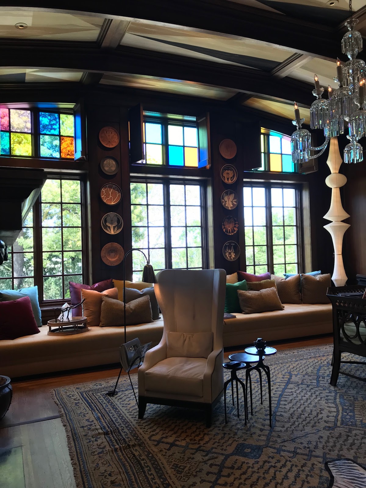 Paul and James added vivid colored film to the upper windows, in homage to James Willis and his Moroccan style.