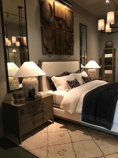 Galleries feature installations of home furnishings devoted to exclusive new RH Interiors, Modern and Outdoor collections. I admired the bed linens, accessories, rugs, lighting and bathroom decor.