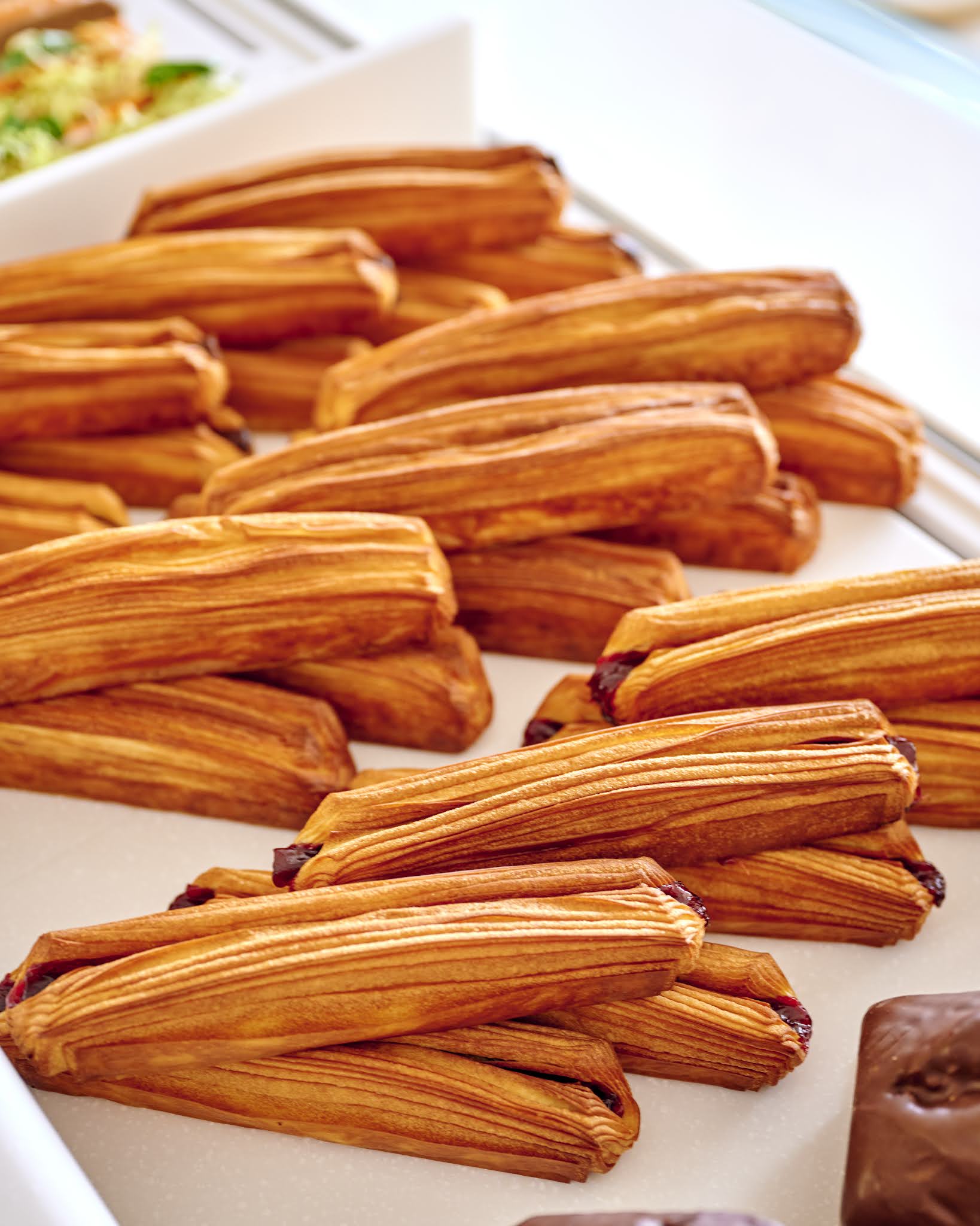 First, with a short menu of breakfast pastries, designed for informal eating, so that they may be enjoyed on the run, at the office, or in meetings. François Perret’s puff pastry remains crisp as ever, but now croissants, pains au chocolat and pastries of the day. The menu changes weekly.